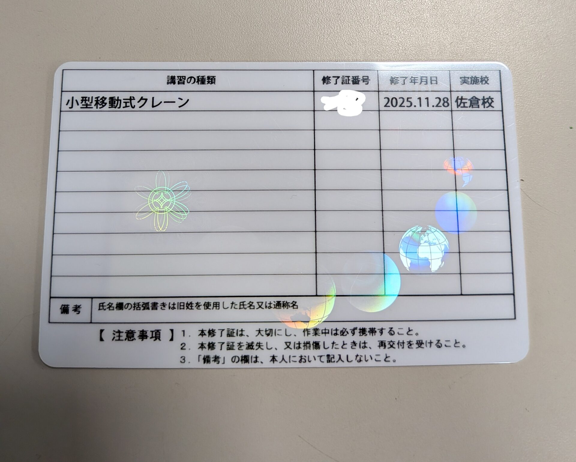今回私は会社の子と一緒に「小型移動式クレーン」の取得に行くことになりました。この資格を取得することによって業務の幅が広がるのであればというのもありましたので、取得しに行くことにしました。